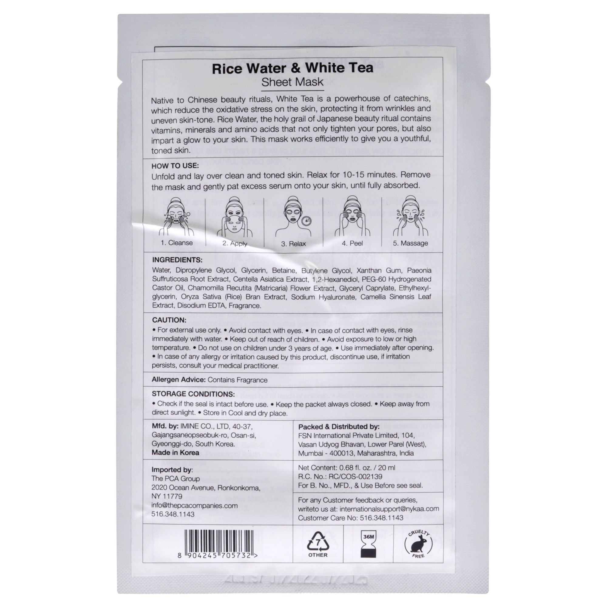 Home > Skin Secrets Sheet Mask - Rice Water and White Tea by Nykaa Naturals for Women - 1 Pc Mask